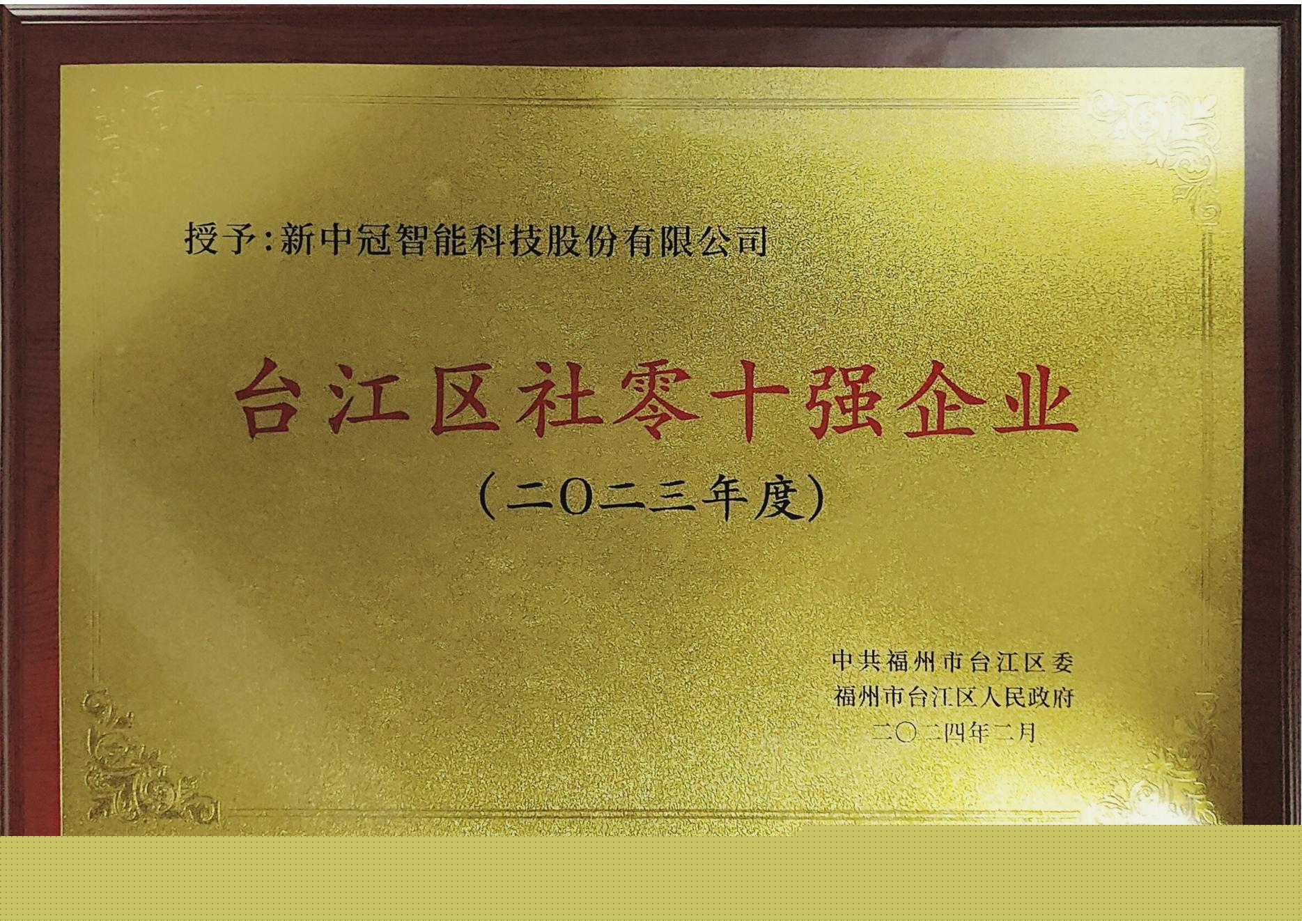 新中冠榮獲臺江區2024年度“社零十強企業”